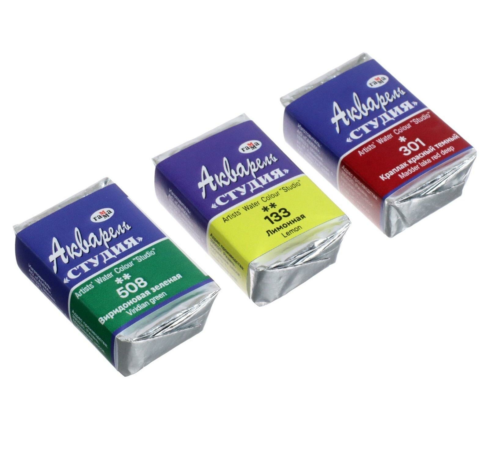 Комплект 3 шт, Акварель художественная Гамма "Студия", 18цв, кюветы, картон. упаковка