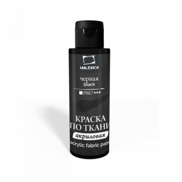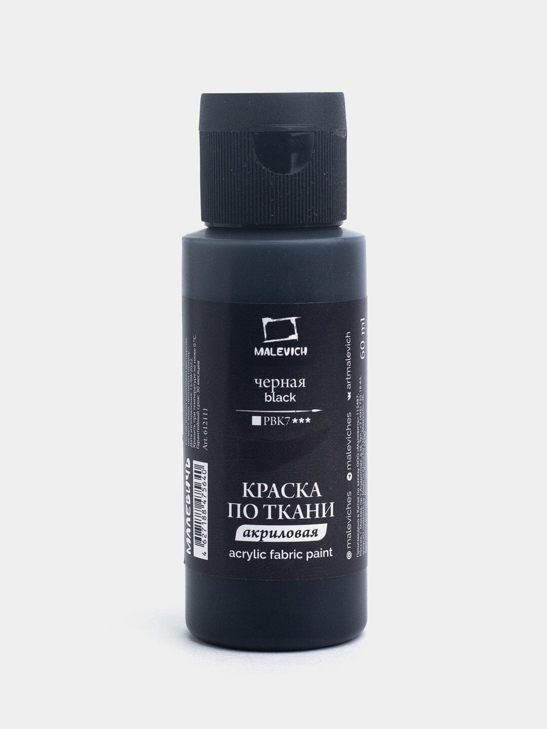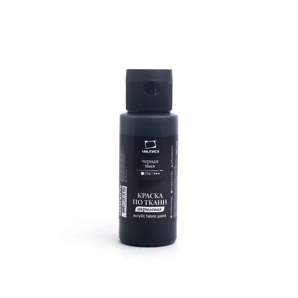 Купить Краска акриловая по ткани Малевичъ, черная, 60 мл