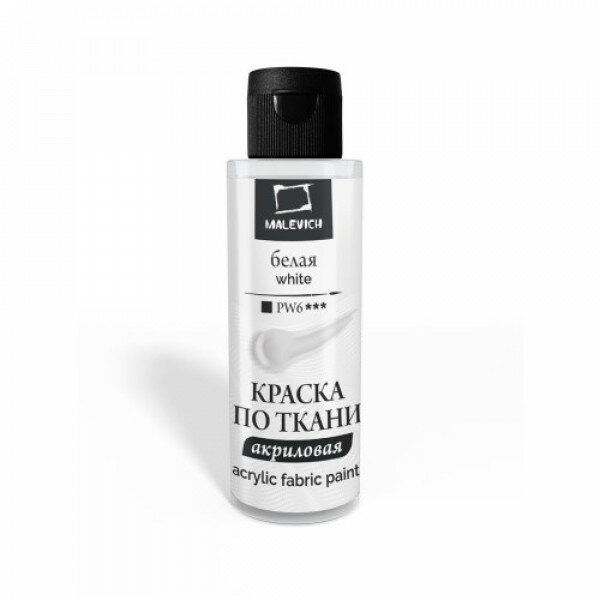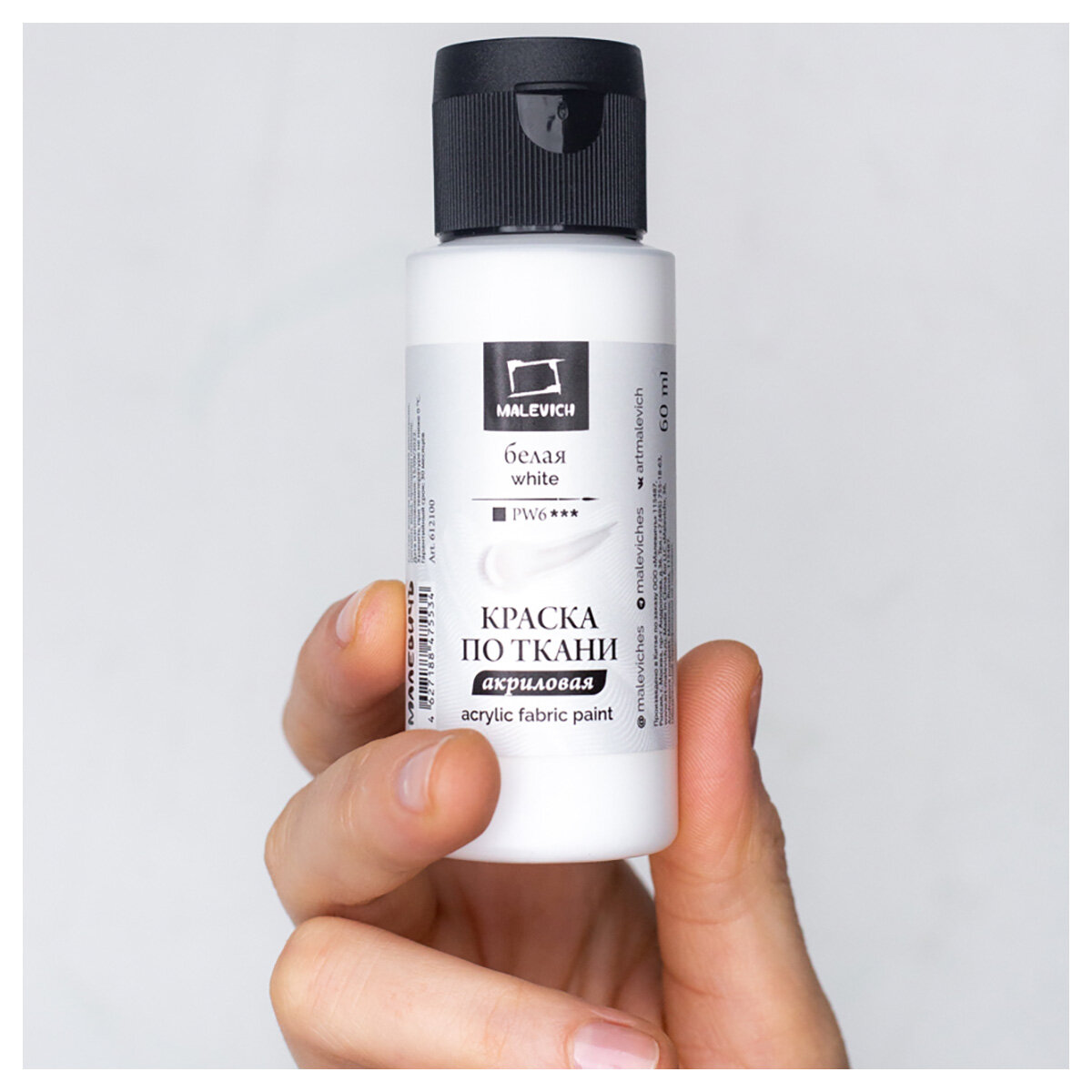 Купить Краска акриловая по ткани Малевичъ, белая, 60 мл