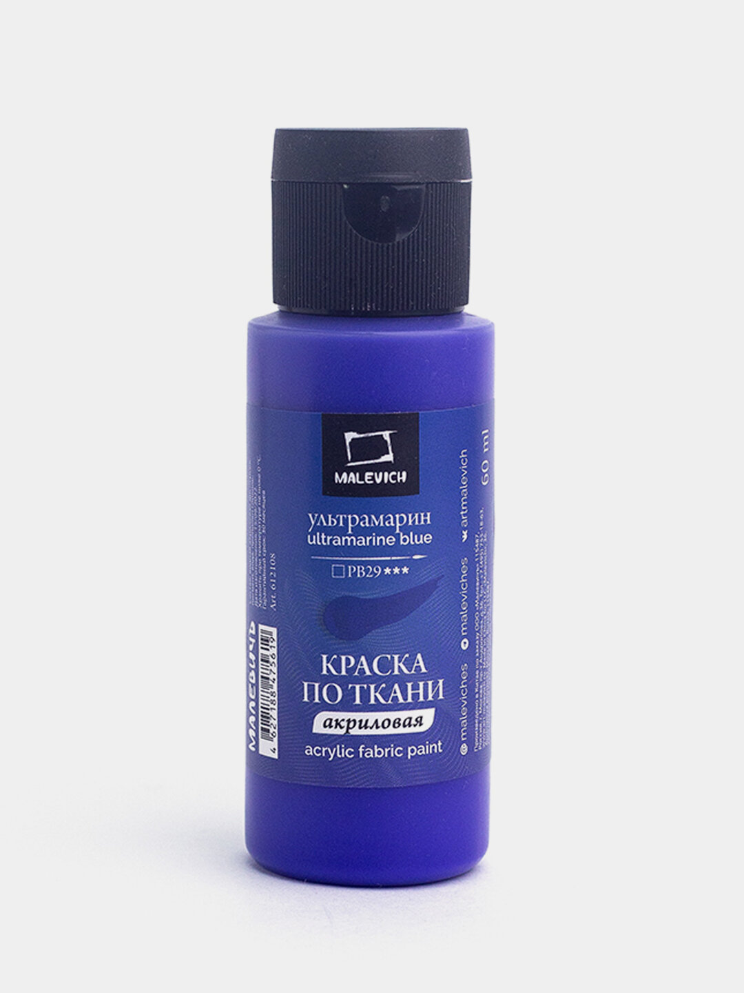 Купить Краска акриловая по ткани Малевичъ, ультрамарин, 60 мл