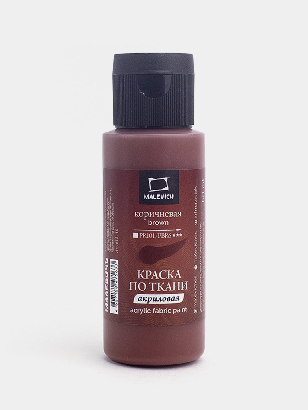 Купить Краска акриловая по ткани Малевичъ, коричневая, 60 мл