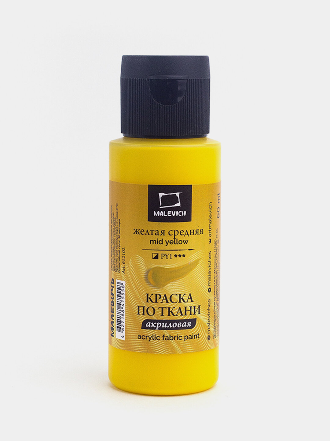 Купить Краска акриловая по ткани Малевичъ, желтая средняя, 60 мл