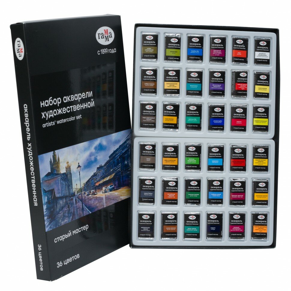 Купить Акварель художественная Гамма "Старый Мастер", 36цв.*2,6мл, кюветы, картон