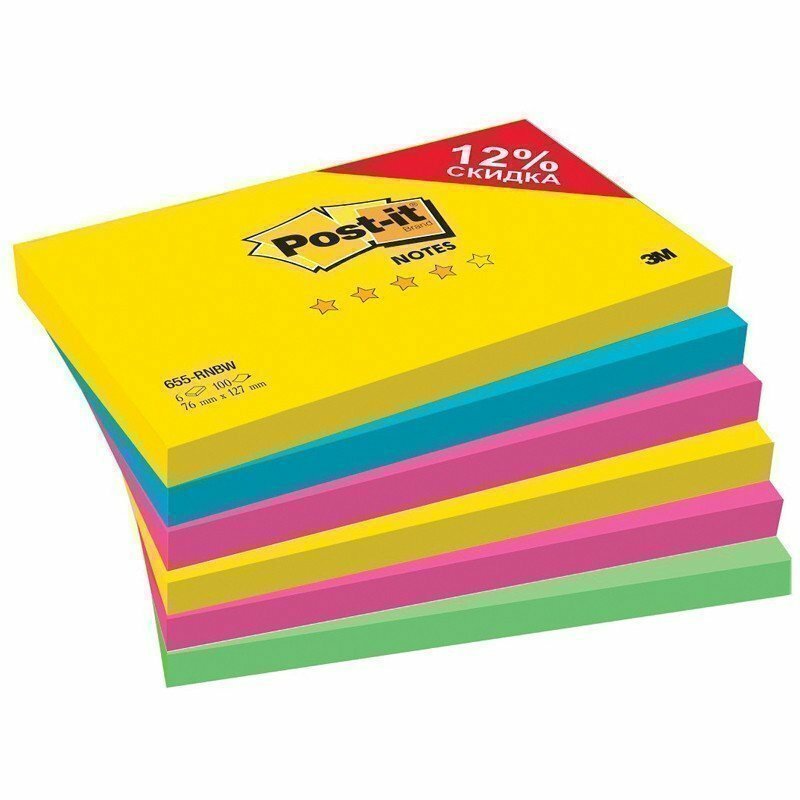 Самоклеящийся блок Post-it "Радуга Плюс", 76*127мм, 4 цвета, 6 блоков*100л 3M 655-RNBW интересное: