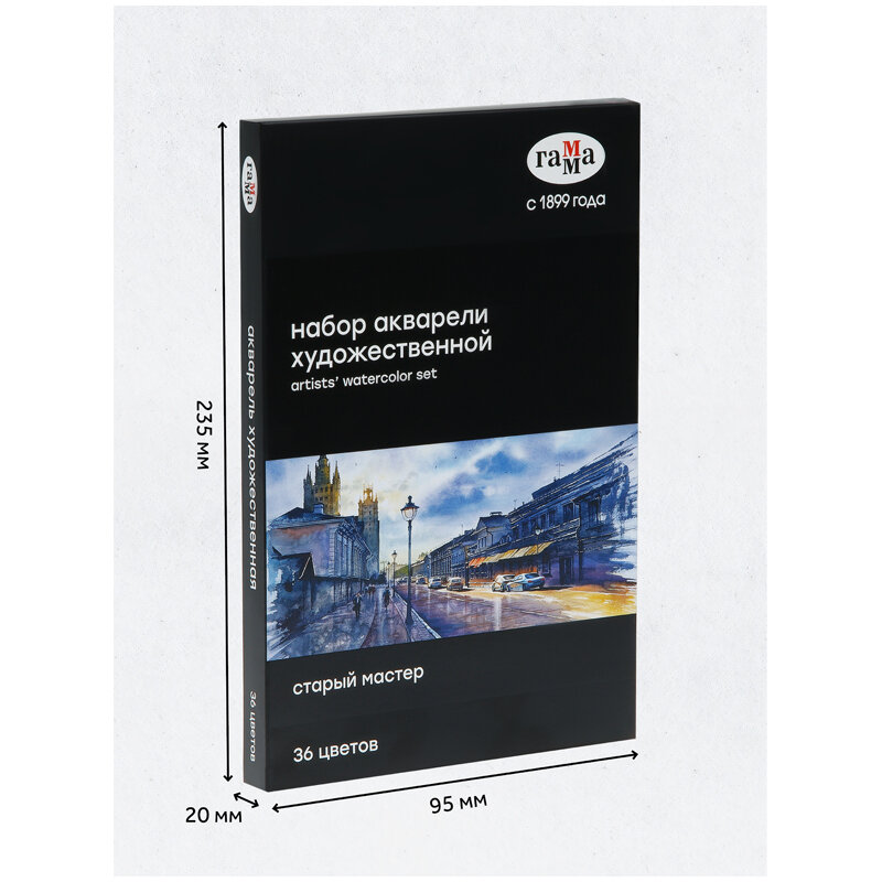 Акварель художественная Гамма "Старый Мастер", 36цв.*2,6мл, кюветы, картон