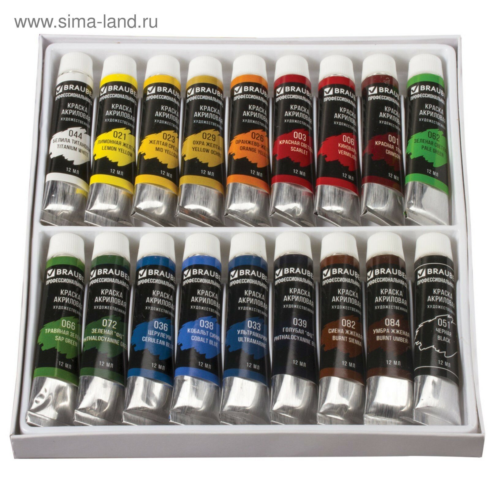 Краски акриловые художественные Brauberg 18 цветов по 12 мл, профессиональная серия, в тубах (191123)