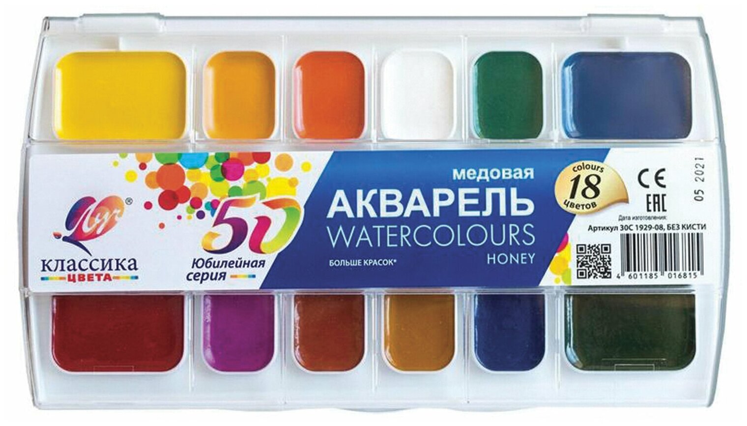 Купить Краски акварельные Луч с увеличенными кюветами "Классика Юбилейная", 18 цветов, медовые 30С 1929-08