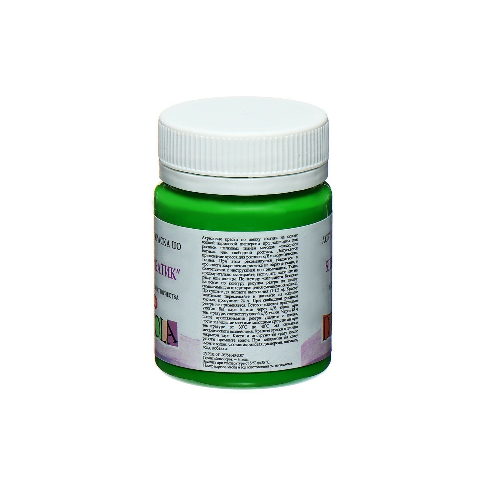 Купить Краска по шелку "Батик", банка 50 мл, ЗХК Decola, Зеленая светлая 4428717 (акриловая на водной основе)