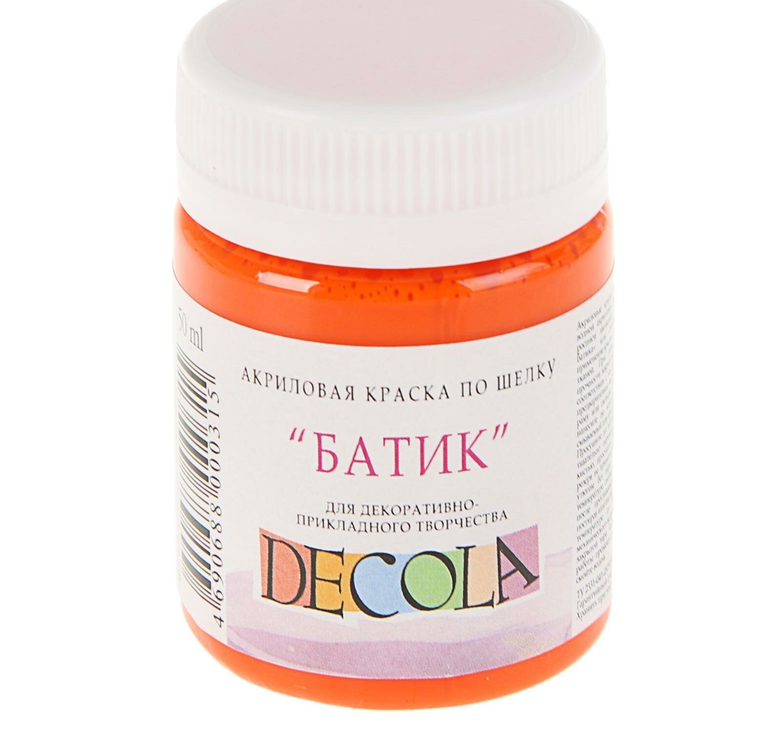 Купить Краска по шелку "Батик", банка 50 мл, ЗХК Decola, Оранжевая 4428315 (акриловая на водной основе)