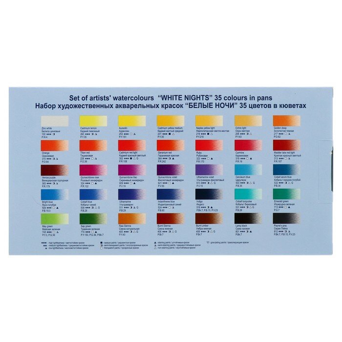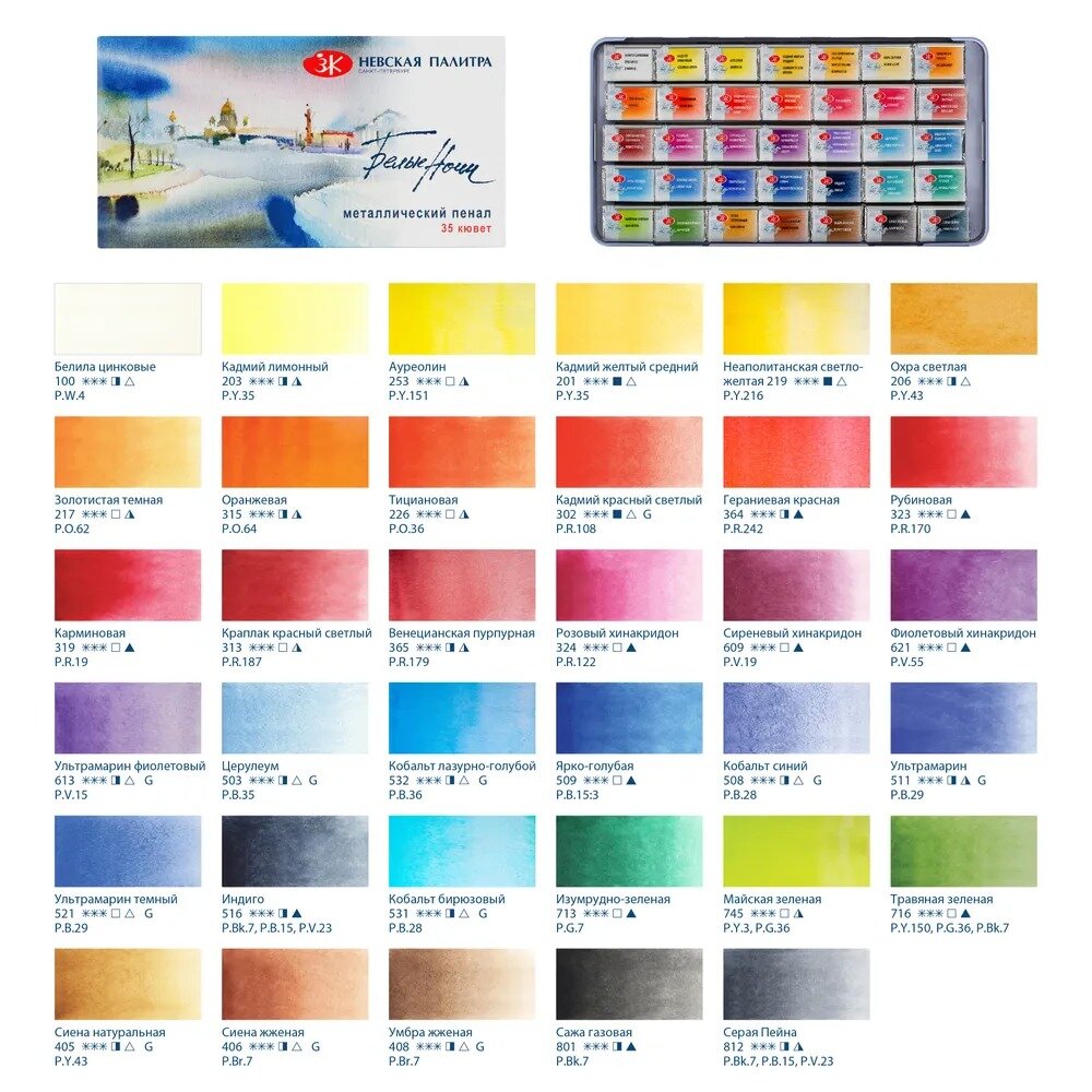 Краска акварель Белые ночи набор, жесть 35 цв. 191201563 в металлическом пенале интересное: