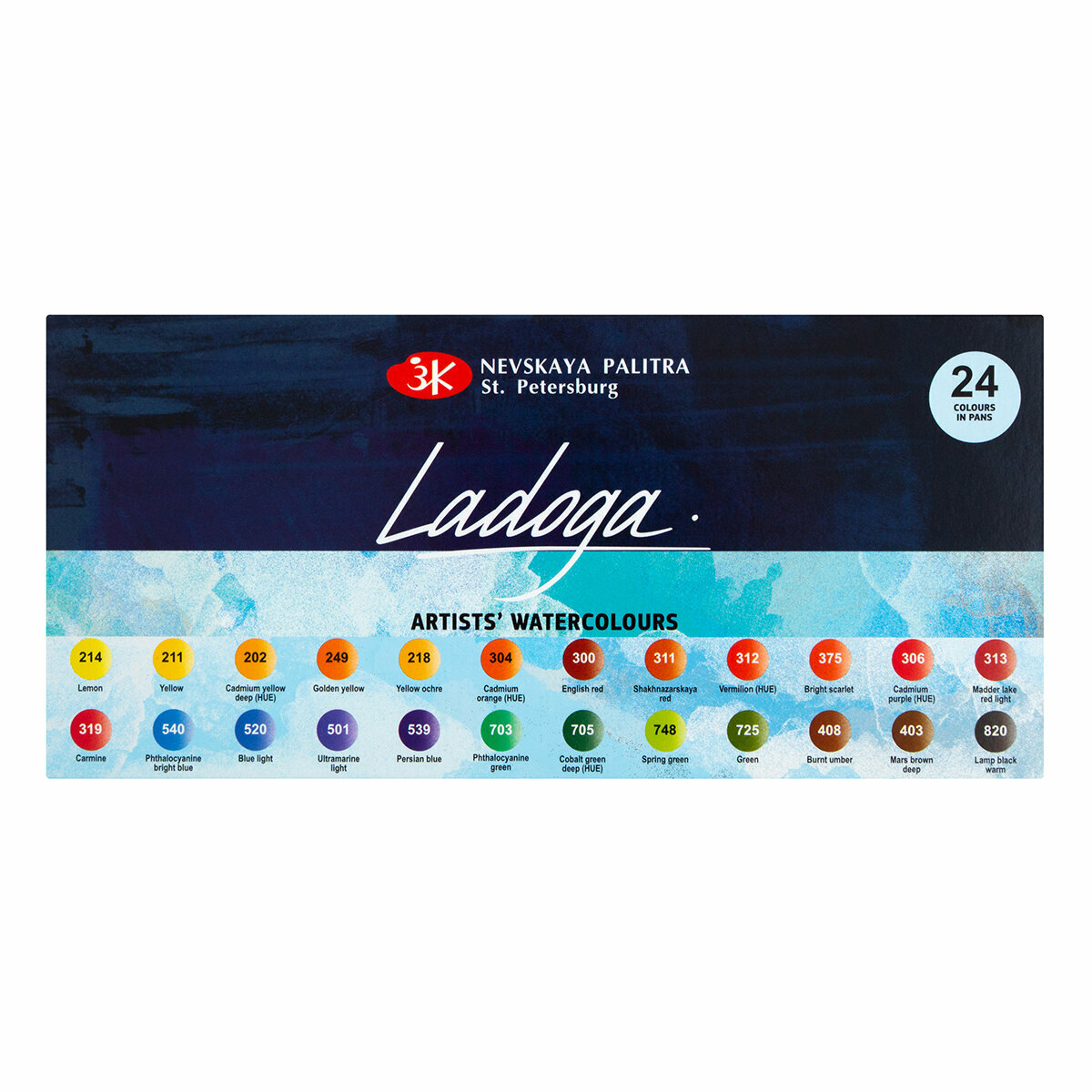 Акварель художественная в кюветах, 24 цвета х 2.5 мл, Ладoга