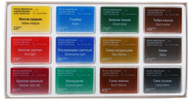 СохранитьАкварель художественная в кюветах, 12 цветов х 2.5 мл, ЗХК "Сонет", "Пленэр", 35411879 интересное: