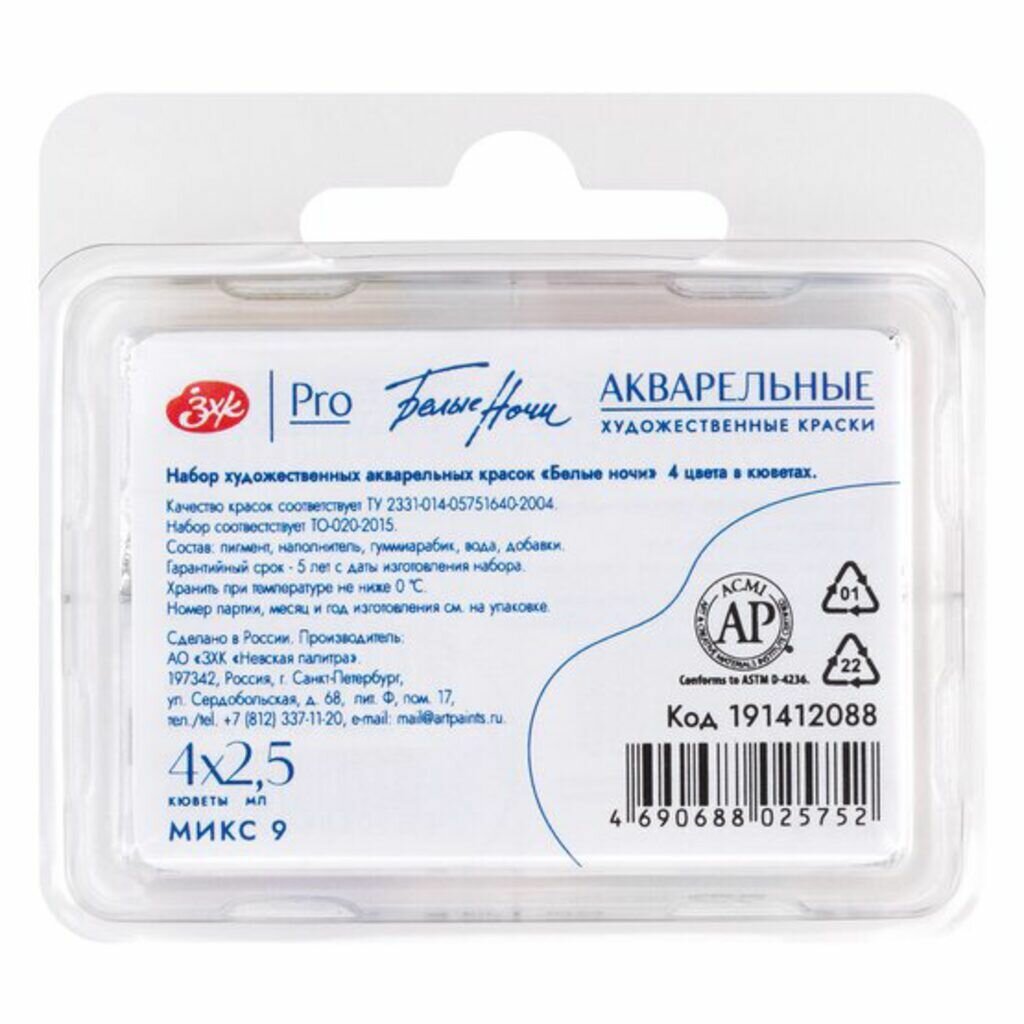 Купить Акварельные краски худож. 4цв.*2,5мл Белые Ночи, кюветы, пластик №9