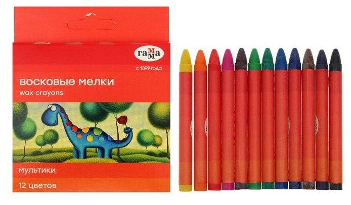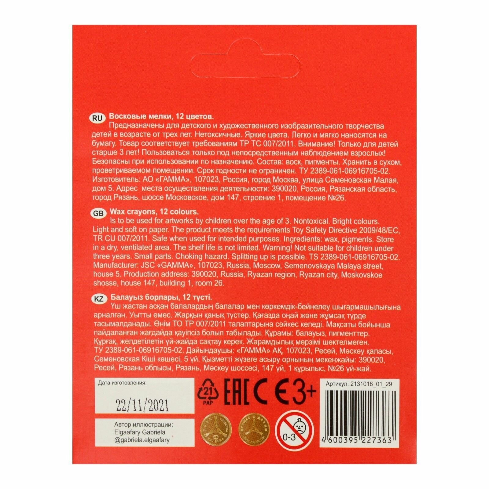 Восковые мелки гамма "Мультики", 12 цветов, 8х90 мм, круглые, картонная упаковка, 2131018_01_29
