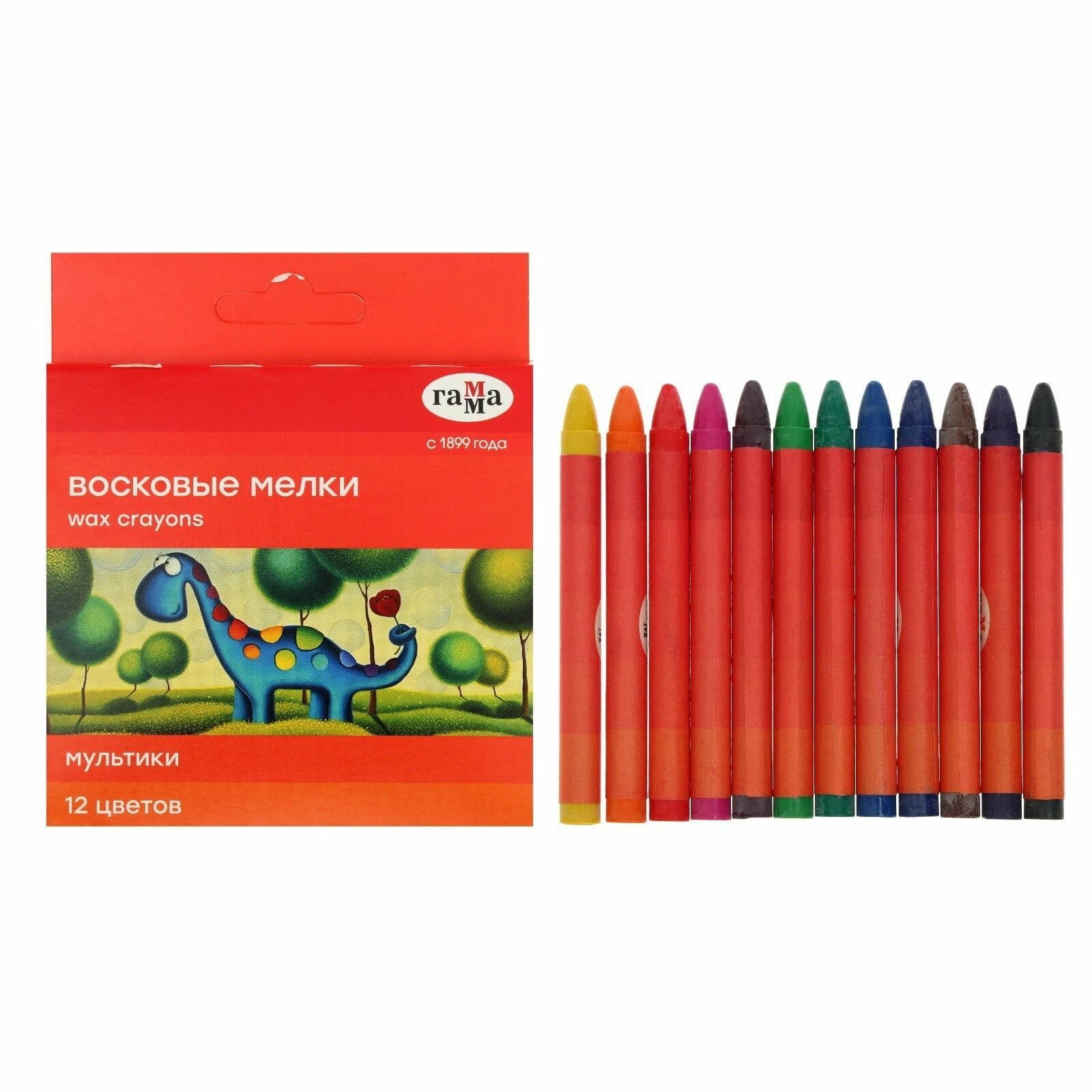 Восковые мелки гамма "Мультики", 12 цветов, 8х90 мм, круглые, 1 упаковка