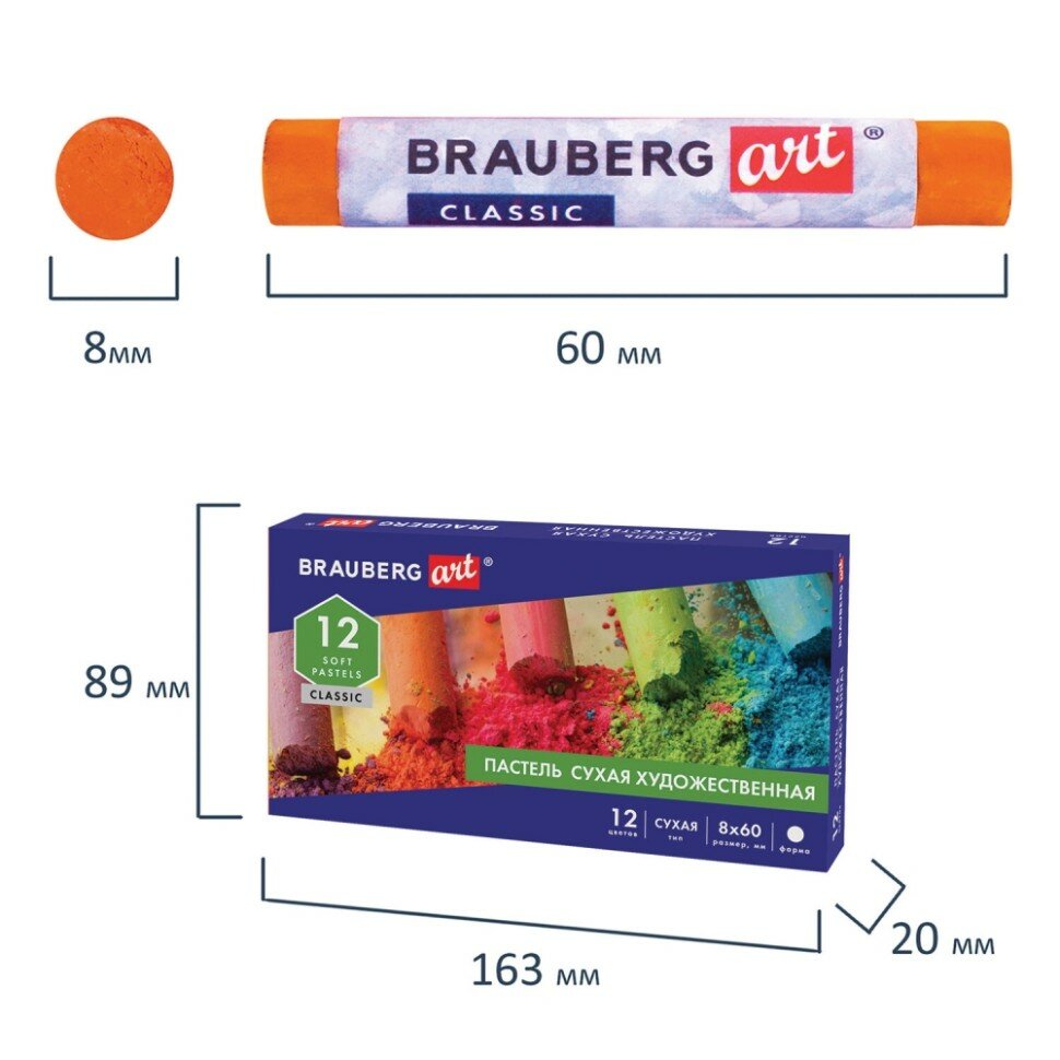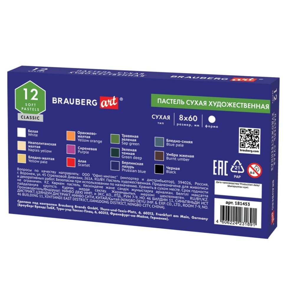 Пастель сухая художественная BRAUBERG ART CLASSIC, 12 цветов, круглое сечение, 181453