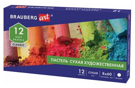 Пастель сухая художественная BRAUBERG ART CLASSIC, 12 цветов, круглое сечение, 181453