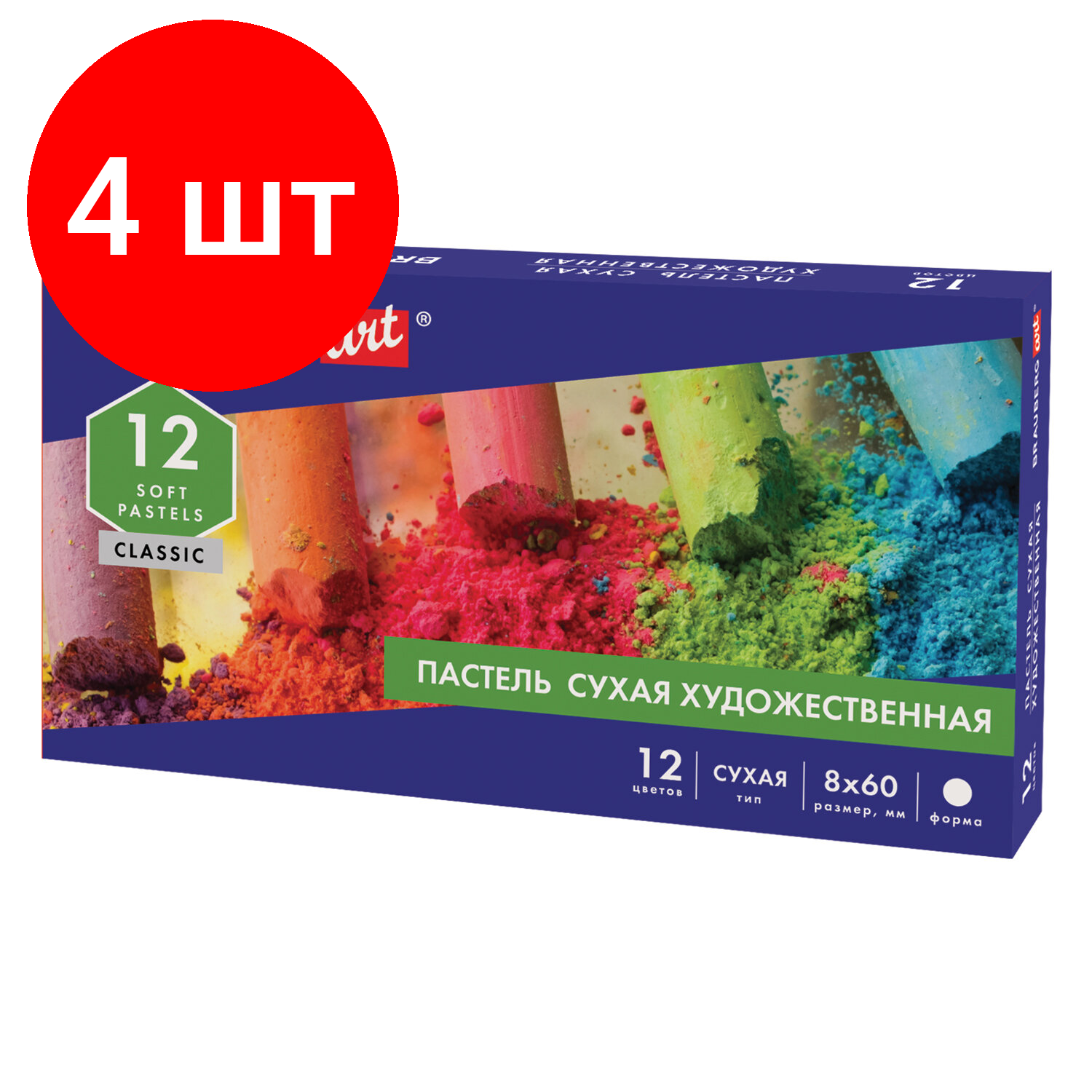 Купить Комплект 4 шт, Пастель сухая художественная BRAUBERG ART CLASSIC, 12 цветов, круглое сечение, 181453