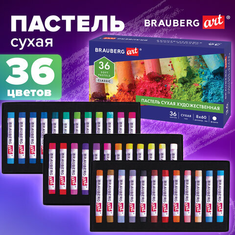 Пастель сухая художественная Brauberg Art Classic, 36 цветов, круглое сечение, 181455