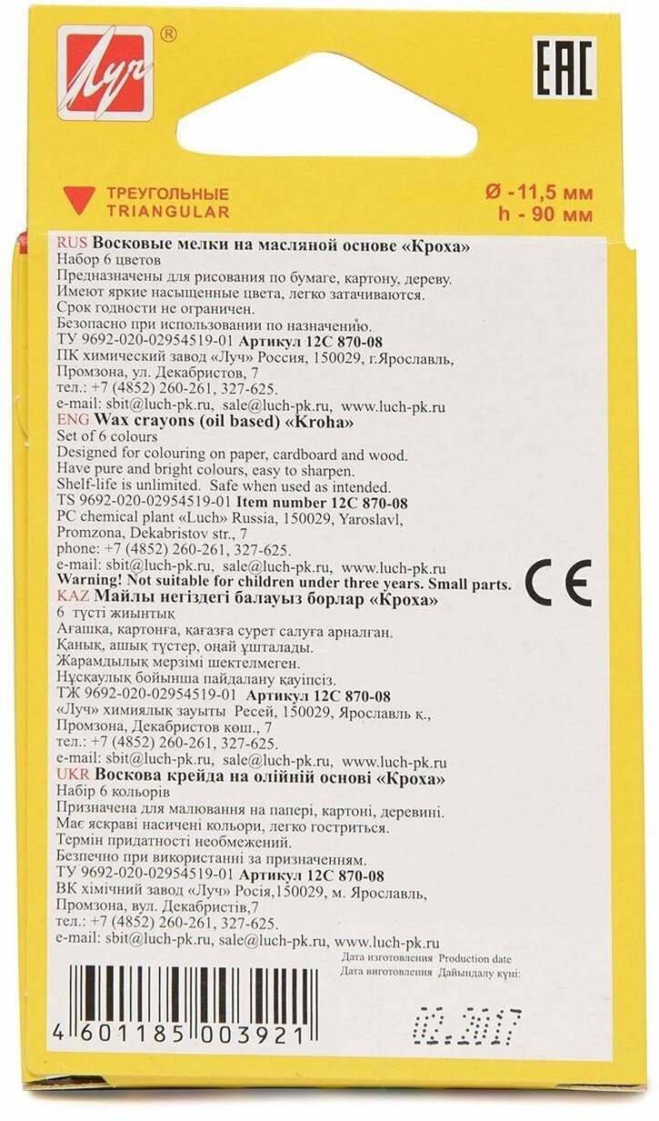 Купить Мелки восковые Луч Кроха 6цв трехгранные 12С 870-08