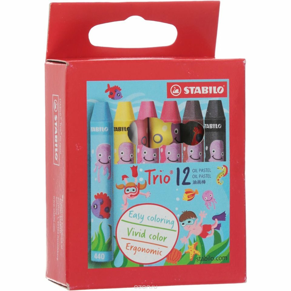 Купить Масляная пастель STABILO Trio трехгранная, 12 цветов