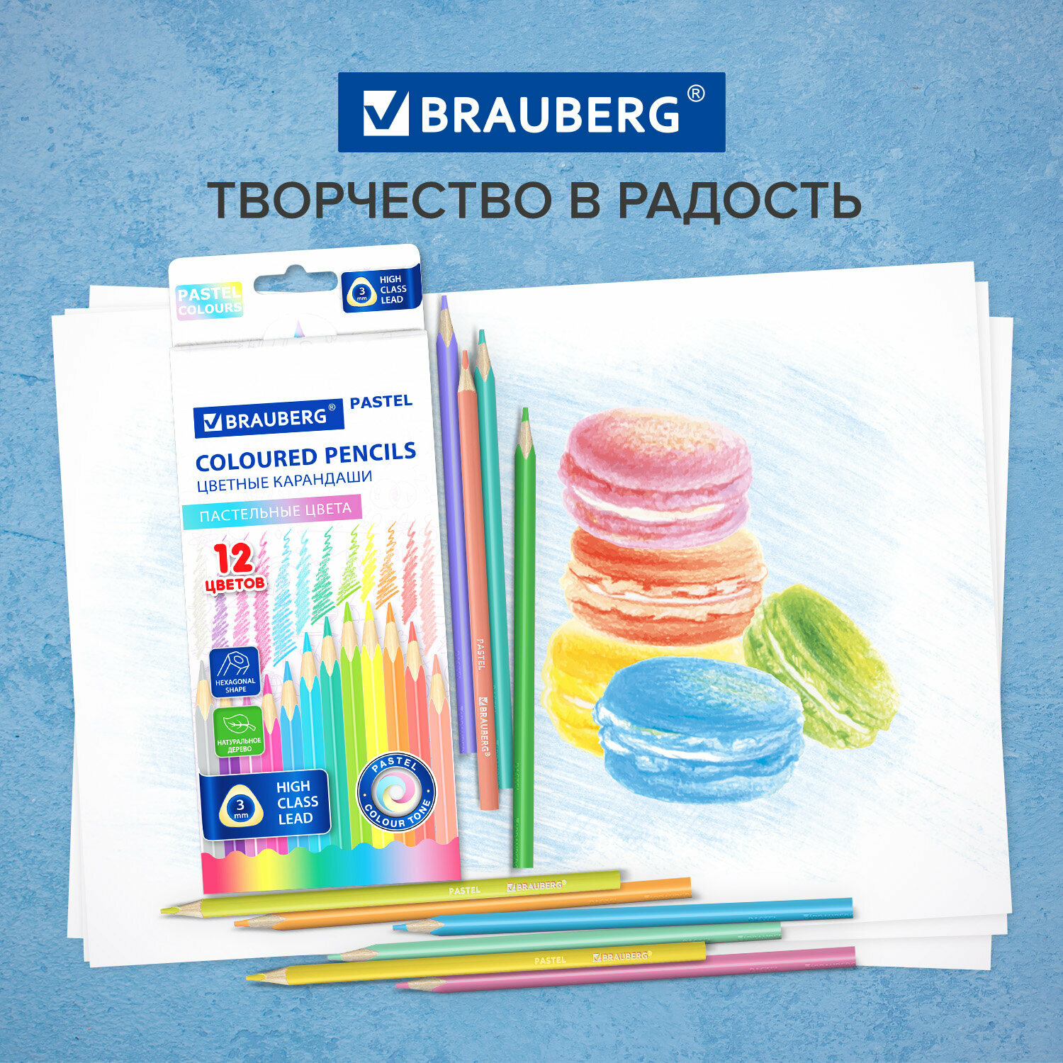 Карандаши цветные 12 цветов Brauberg Pastel (L=176мм, d=3мм, 3гр) (181850), 12 уп.