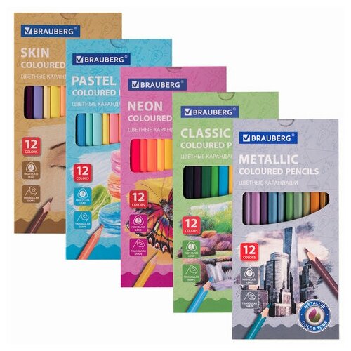 СохранитьКомплект 4 шт, Карандаши цветные BRAUBERG, 60 цветов (Базовые, Металлик, Неон, Пастель, Телесные), 181792 интересное: