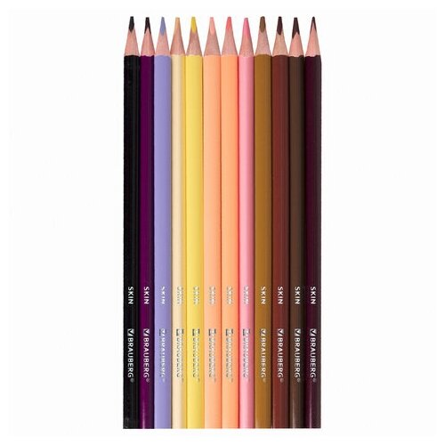 Карандаши цветные BRAUBERG, 60 цветов (Базовые, Металлик, Неон, Пастель, Телесные), 181792