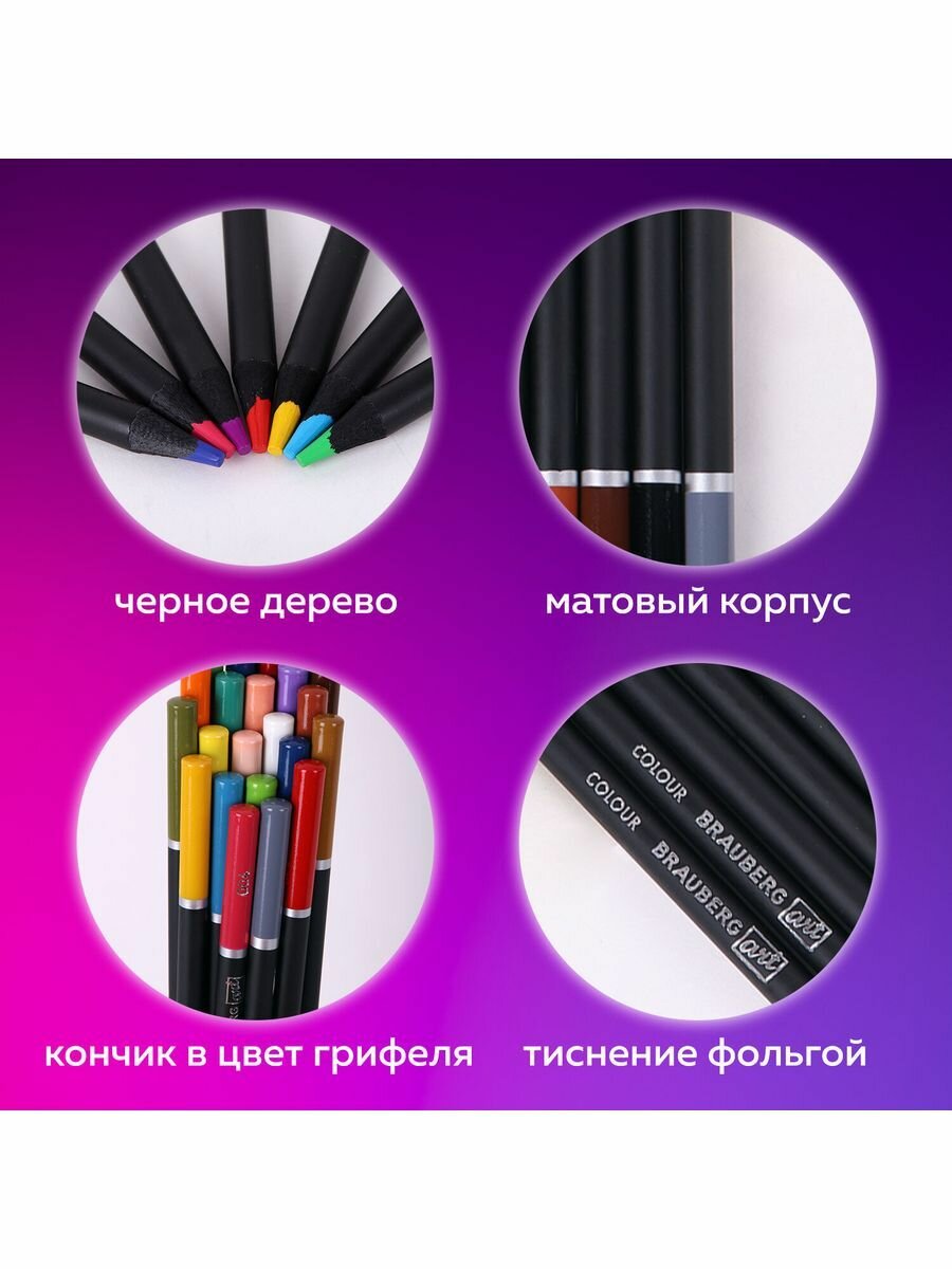 Карандаши художественные цветные акварельные BRAUBERG ART CLASSIC, 24 цвета, грифель 3,3 мм, 181530