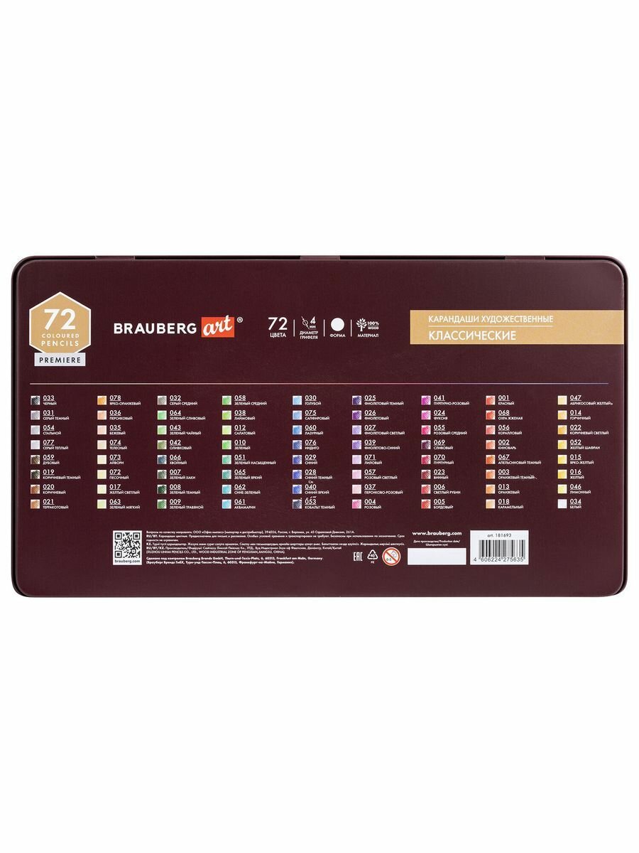 Карандаши художественные цветные акварельные BRAUBERG ART CLASSIC, 48 цветов, грифель 3.3 мм, 181532