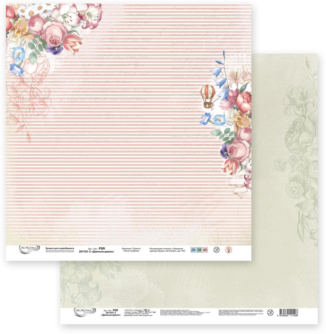 Бумага для скрапбукинга "Mr.Painter" PSR 201103 "Давным-давно" 190 г/кв.м 30.5 x 30.5 см 3 интересное: