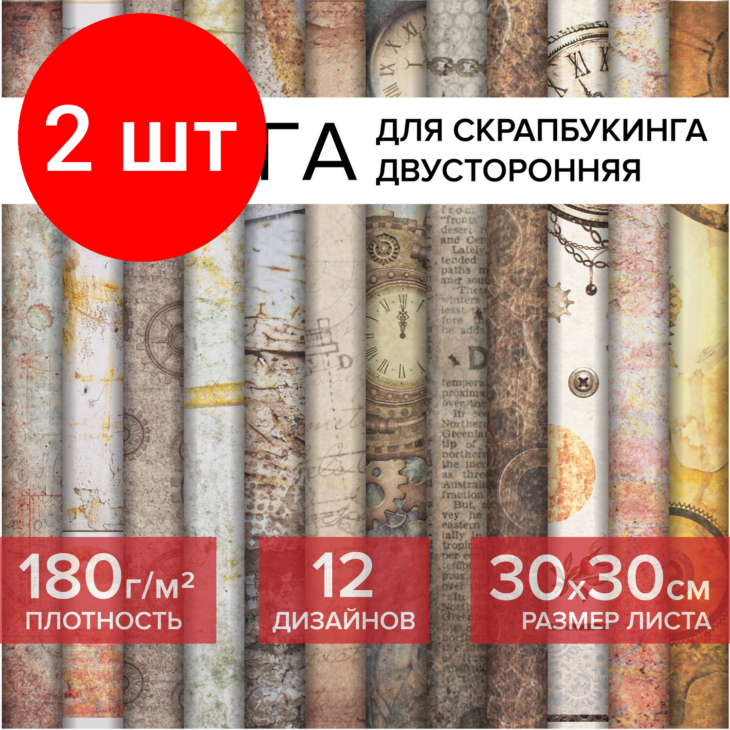 Купить Комплект 2 шт, Бумага для скрапбукинга 30х30 см "Стимпанк", двусторонняя, 12 листов, 12 дизайнов, 180 г/м2, остров сокровищ, 662769