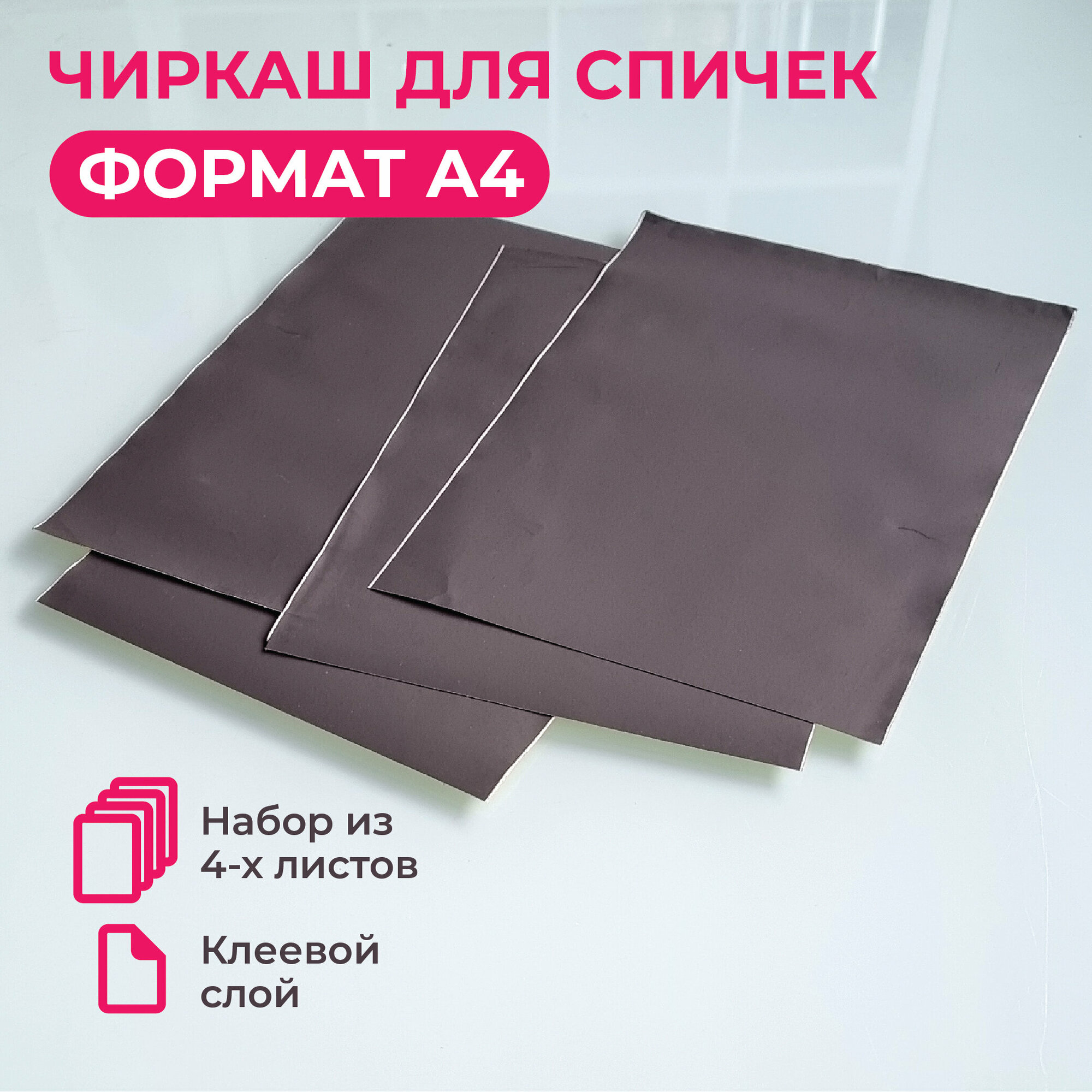 Купить Чиркаш для спичек в листах 210х297 мм (А4), цвет черный, набор из 4 листов