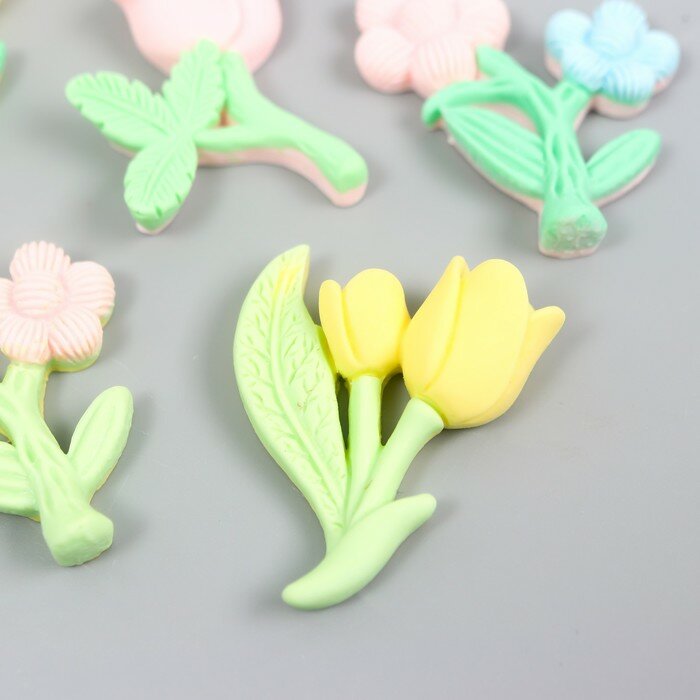 Купить Декор для творчества пластик "Садовый цветок" набор 8 шт микс 2,6х4х0,7 см