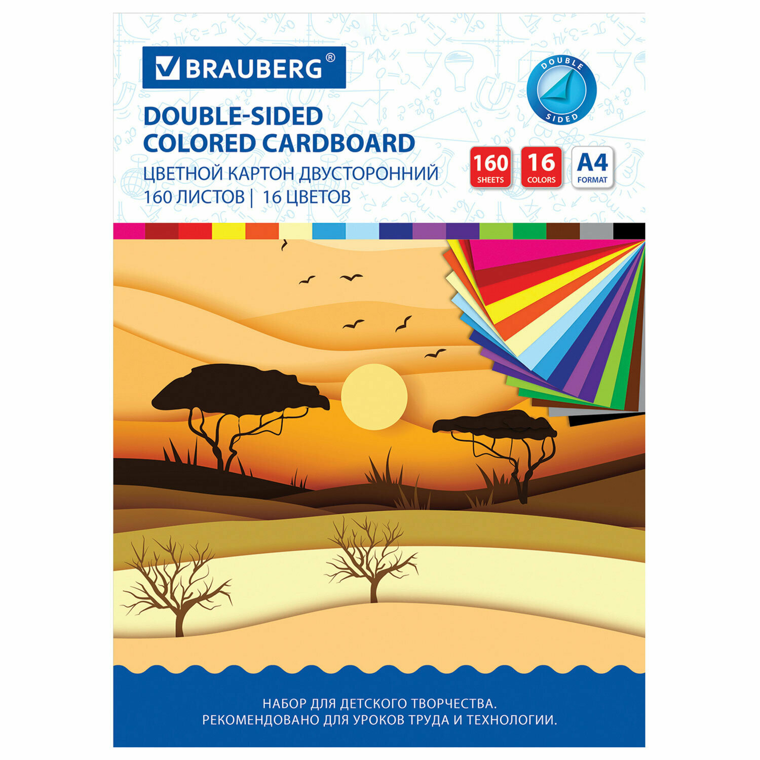 Цветной картон Brauberg А4, 2-сторонний, мелованный Extra, 16 листов, 16 цветов, 200х290 мм