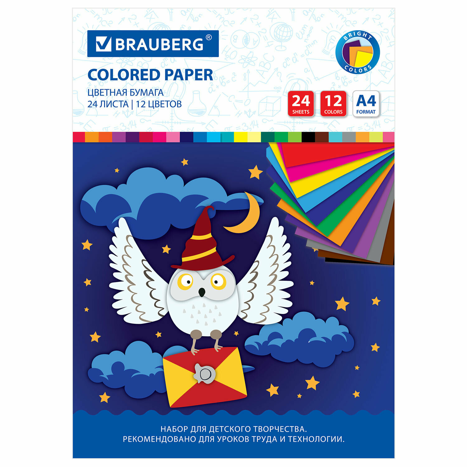 Цветная мелованная бумага для творчества и оформления А4, 24 листов, 24 цвета, папка, индивидуальная упаковка, Brauberg Kids, 200х280 мм, 115163