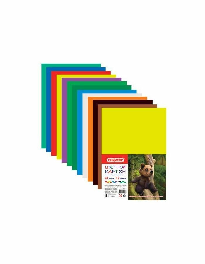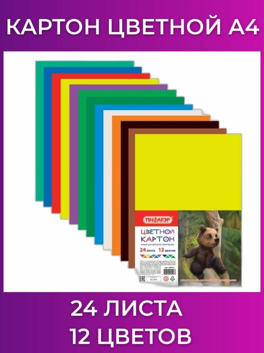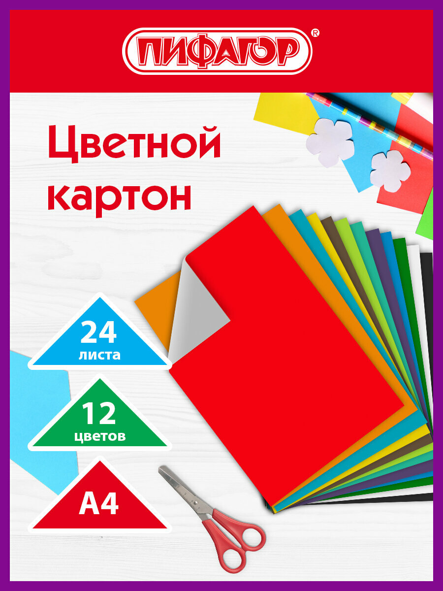 СохранитьКартон цветной А4 немелованный (матовый), 24 листа 12 цветов, пифагор, 200х283 мм, 128012, в комплекте 1шт интересное: