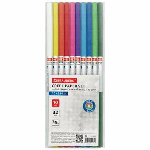 Купить Бумага гофрированная/креповая, 32 г/м2, 50х250 см, 10 рулонов, яркие цвета, BRAUBERG, 112556, в наборе 1 компл.