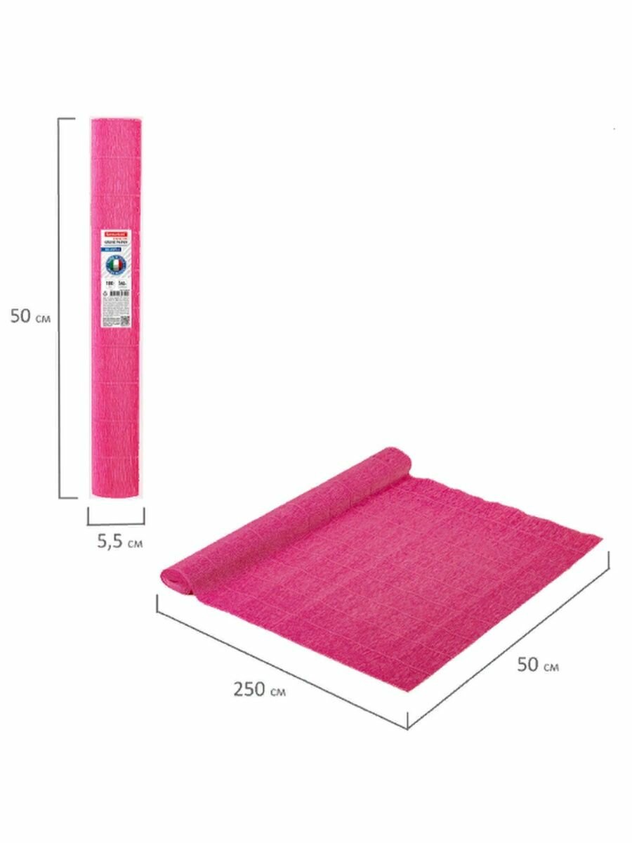 Бумага гофрированная Brauberg Италия, 180 г/м2, 50х250 см, светло-малиновая 570, Fiore (112637)