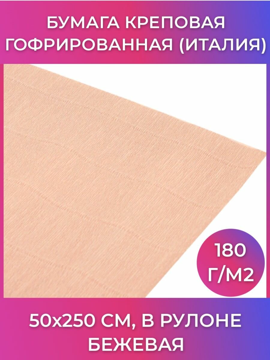 Бумага гофрированная/креповая (италия) 180 г/м2, 50х250 см, кремовая (17a1), BRAUBERG FIORE, 112621
