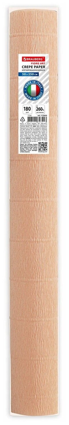 Бумага гофрированная/креповая (италия) 180 г/м2, 50х250 см, персиковая (17a5), BRAUBERG FIORE, 112634