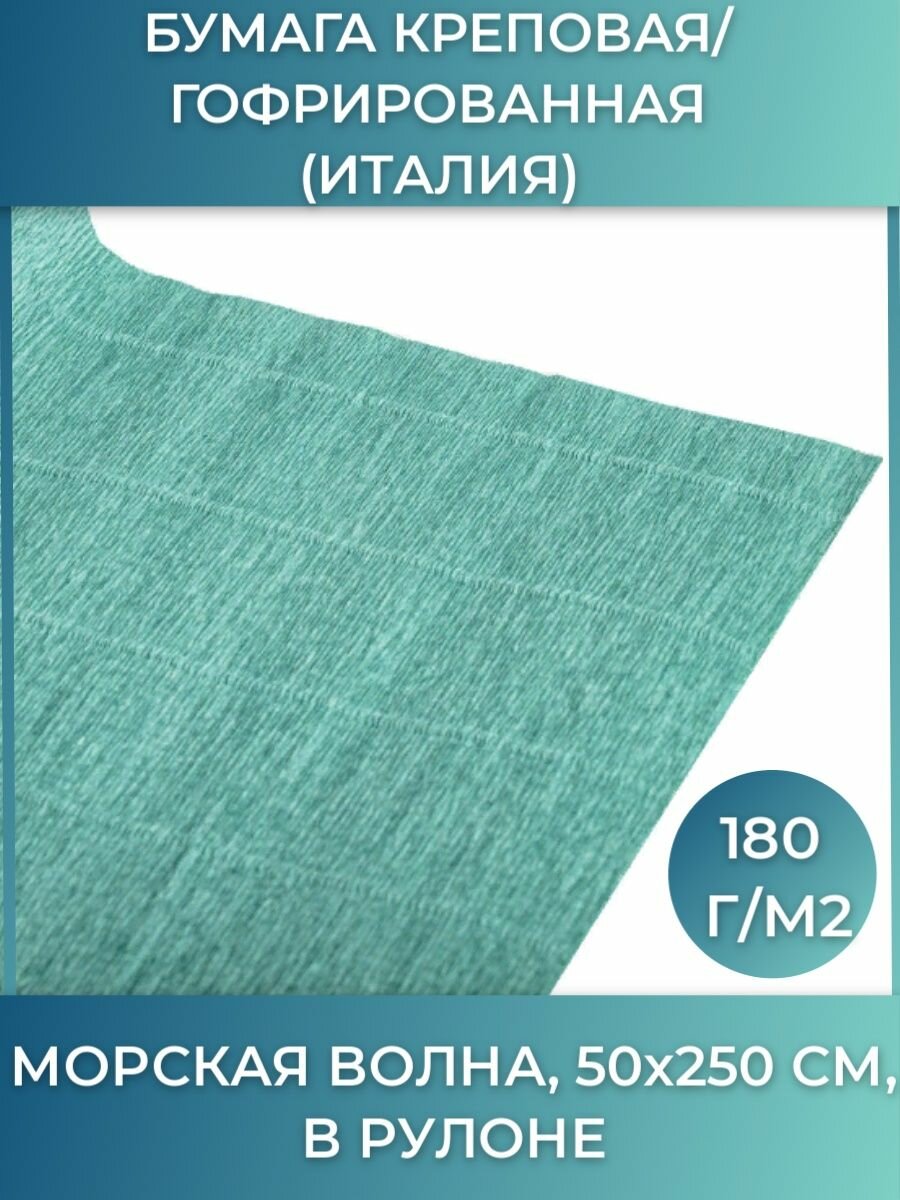 Бумага гофрированная (италия) 180г/м, морская волна, 50х250см, BRAUBERG FLORE, 112628