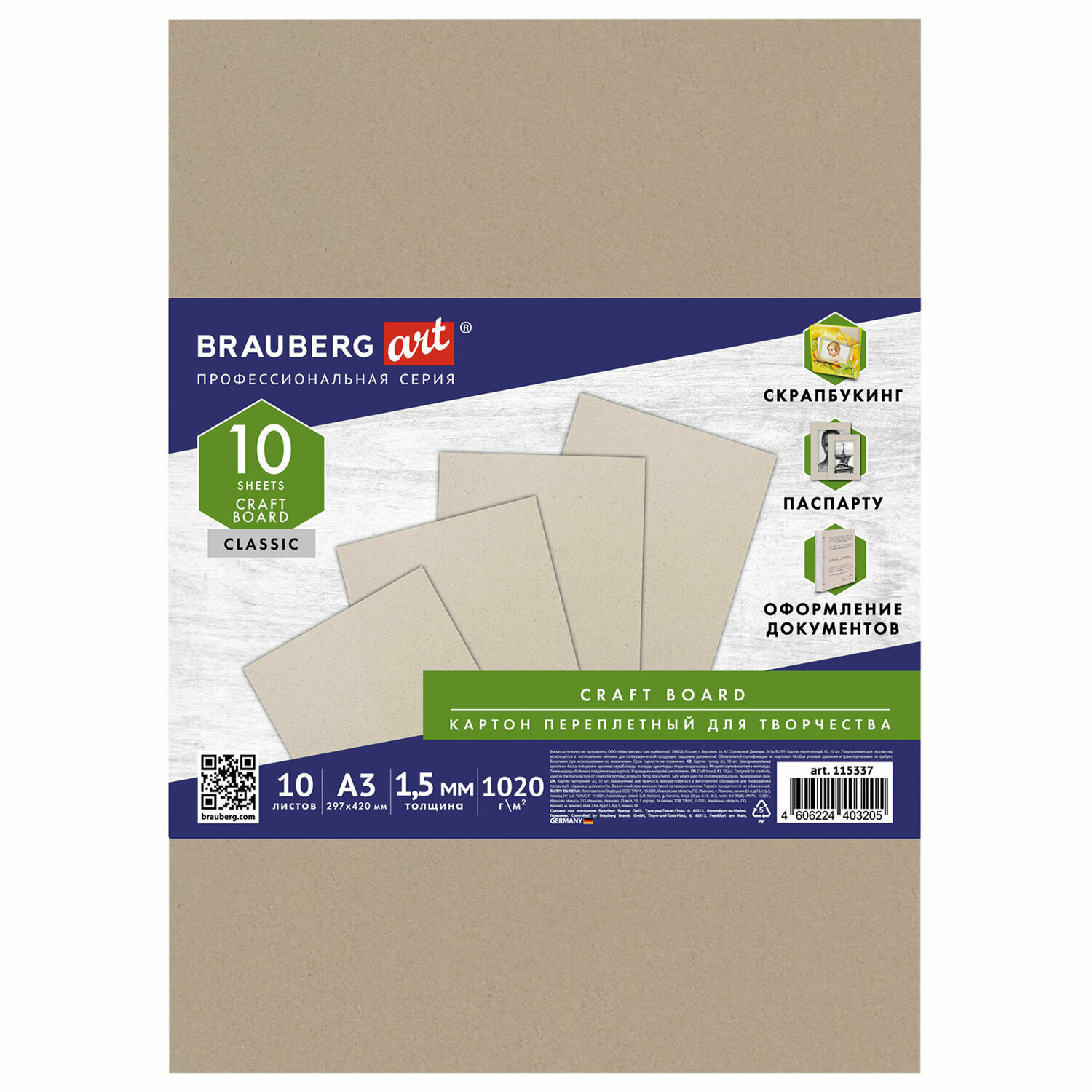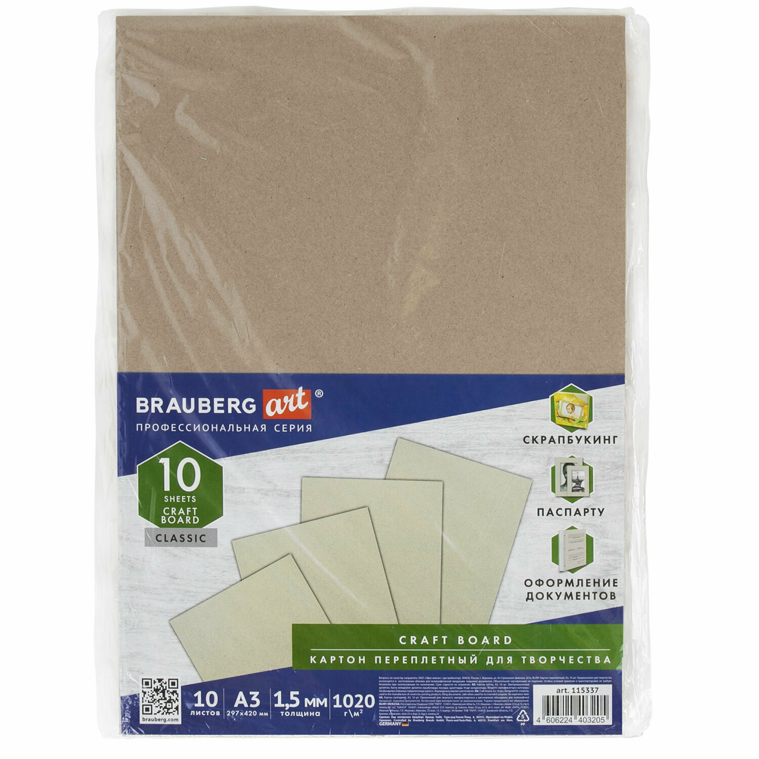 Купить Картон переплетный плотный для скрапбукинга, толщина 1,5 мм, А3 (297х420 мм), Комплект 10 штук, Brauberg Art, 115337