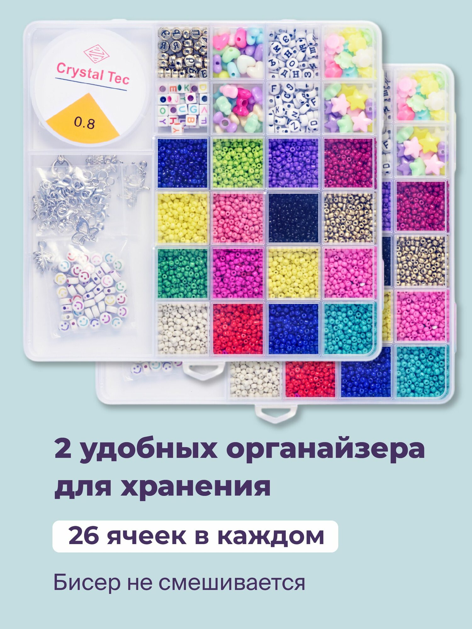 Большой набор 28 цветов бисера для плетения с силиконовой леской 0,8 мм и ножницами, размер органайзера 22,5 х 13,5 см BSD03/201288129