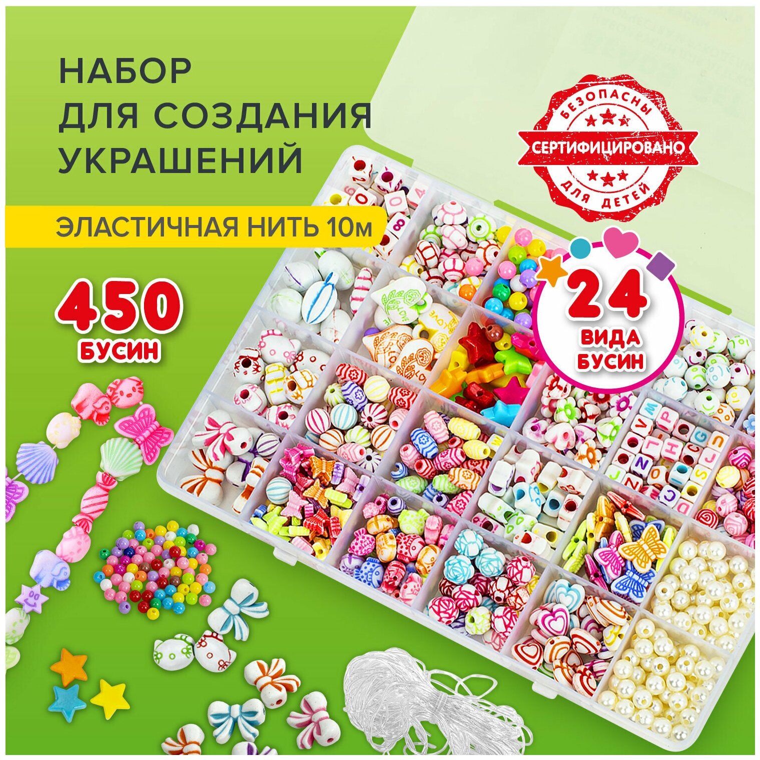 Набор бусин для творчества, рукоделия и создания украшений, 450 бусин, 24 вида. интересное: