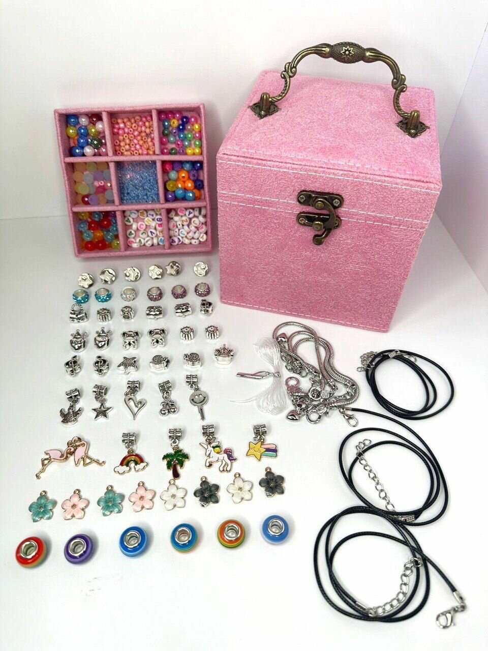 Купить Набор для создания браслетов в шкатулке. Бижутерия для девочек. Бусины. Бисер. Шармы. Подарочный набор девочке на 8 марта