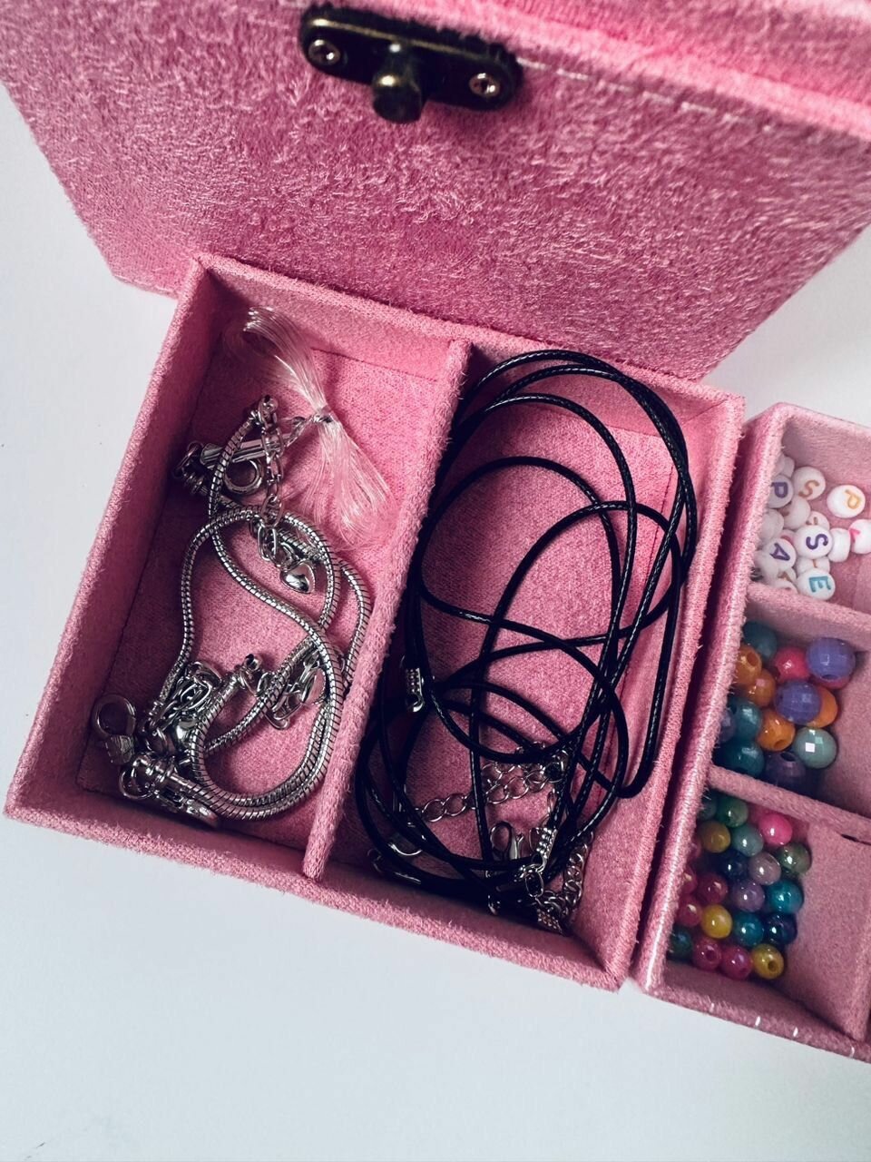 Набор для создания браслетов в шкатулке. Бижутерия для девочек. Бусины. Бисер. Шармы. Подарочный набор девочке на 8 марта интересное: