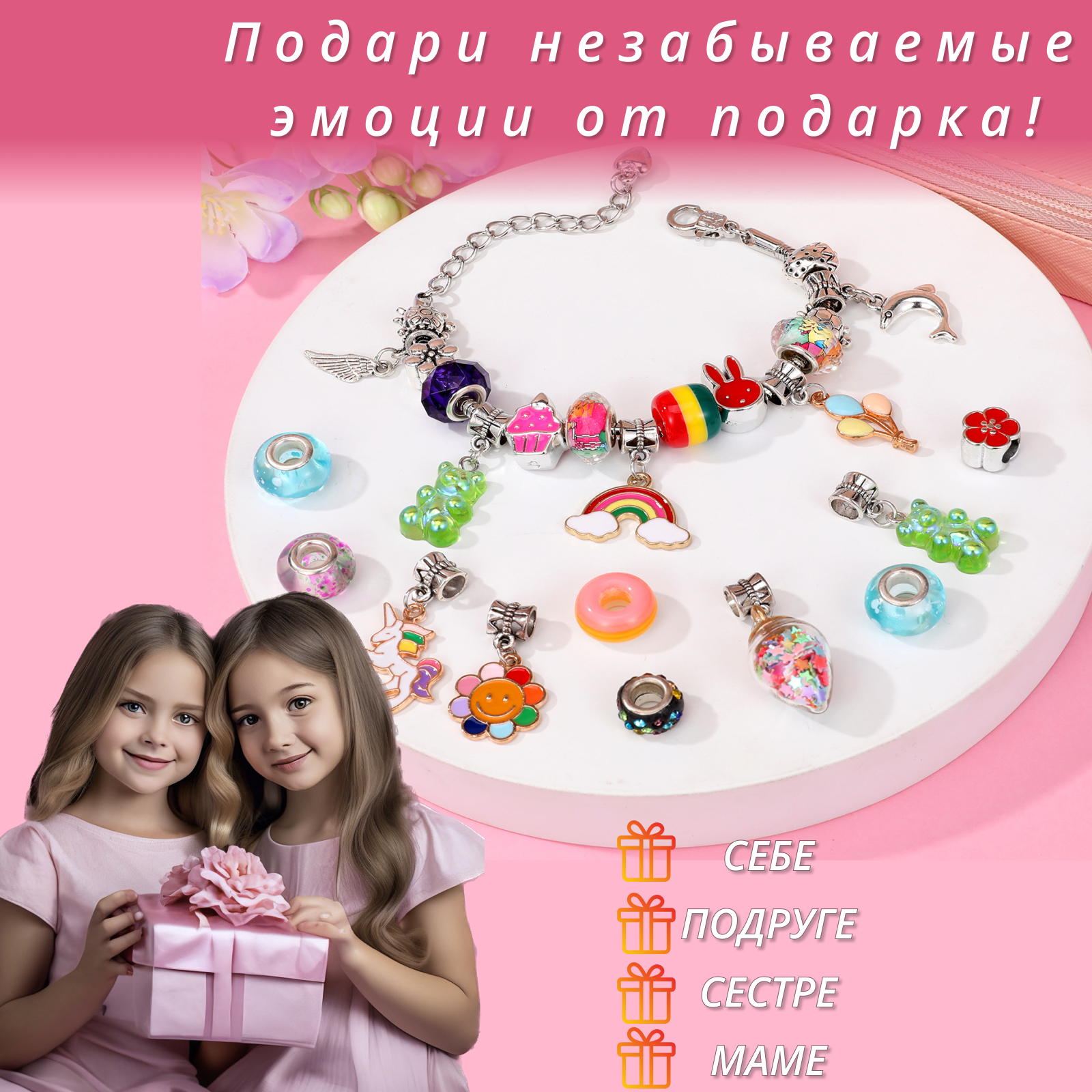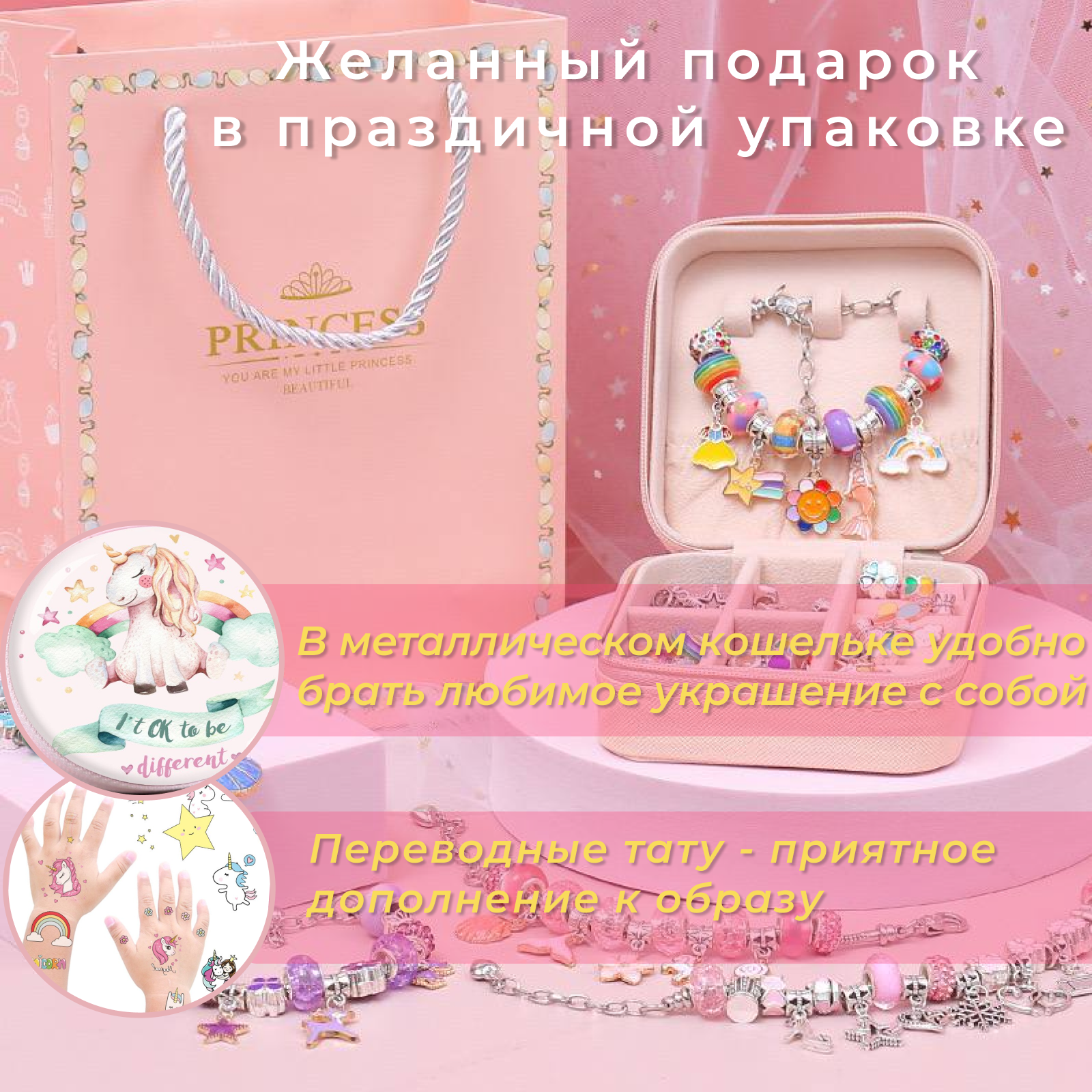 Подарочный Набор для создания браслетов, украшений и творчества в подарочной коробочке, бижутерия для девочек, подарок девочке в маленькой коробочке с единорогом, подарок для девочки на День рождения
