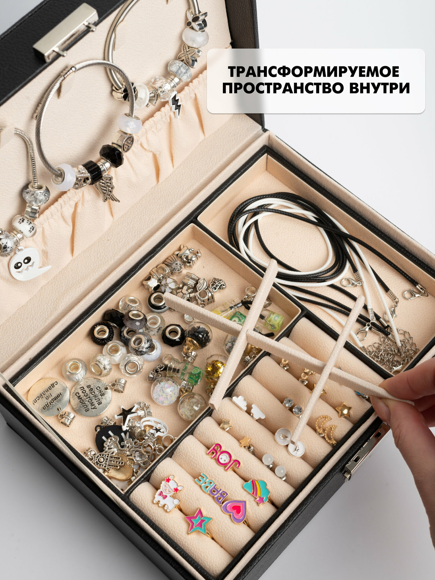 Большой набор для творчества и создания украшений в шкатулке (браслеты, подвески, серьги, кольца) Цвет Серебро/Черный, 257 предметов интересное: