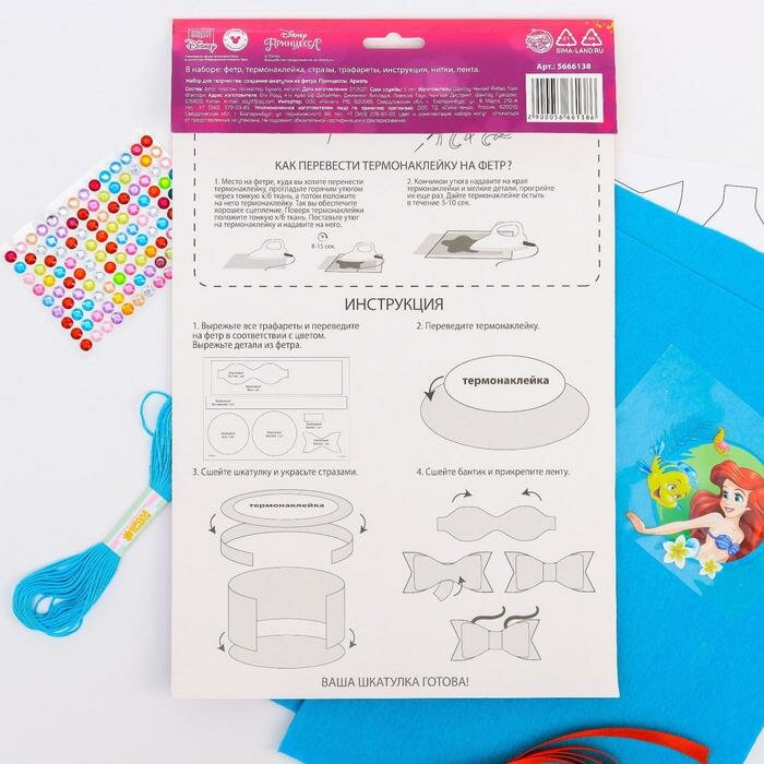 Набор для создания шкатулки из фетра, Принцессы: Ариель интересное: